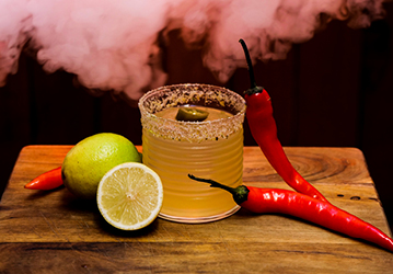 Blending these two Tequilas provides an alluring sweetness to compliment the acidy of the fresh citrus. The butterfly pea flower softens out the finish just before we kick it back up with our ‘Cantina-Citrus’ fire spray!